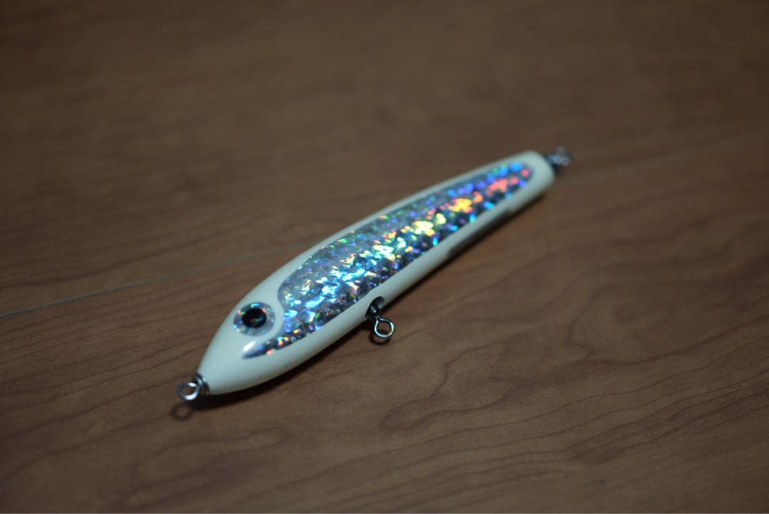 - タングステンになれているせいか130gの割りにエッジの効いたデザインなのでシルエットが大きく感じます。サイドからの水受けが良さそうなので潮が効いていない時でもしっかりとアクションしてくれそうです。